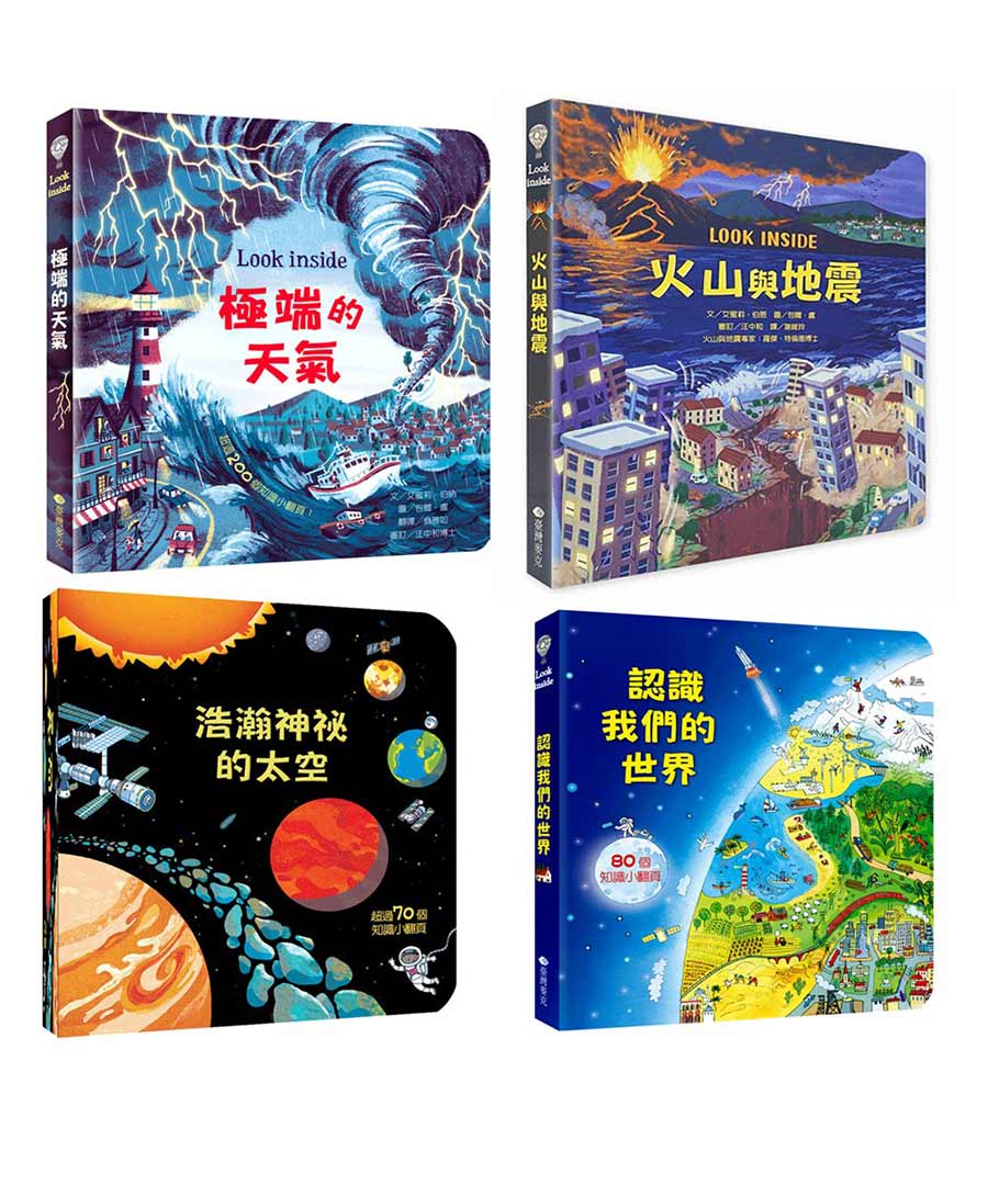 最暢銷的Look Inside系列,每頁上都有許多有趣的翻蓋。在這本引人入勝又充滿資訊繪本中,涵蓋了極端天氣和氣候變化的熱門話題,透過翻頁的設計,讓我們一起來探究各種極端的天氣,從破壞性強的龍捲風到致命的乾旱和野火的介紹,同時包括人們如何準備和應對颶風、乾旱和野火,以及有關極端天氣如何惡化的資訊。最後一頁還探討了氣候變化對世界各地極端天氣的影響,並提供讀者對於氣候變化我們可以做些什麼,採取哪些措施來幫助我們的星球。
