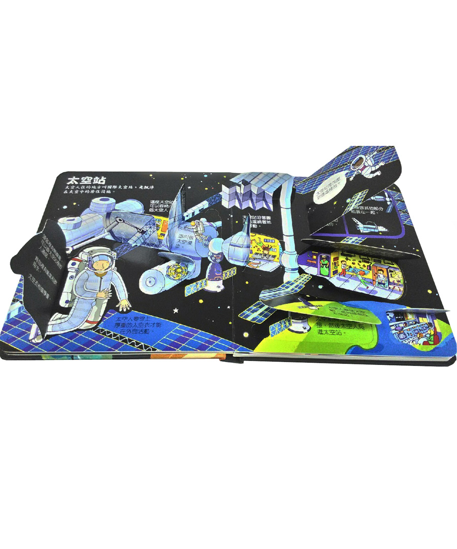 超過70個知識小翻頁帶領你一起前進太空,認識月球如何形成、恆星為什麼會發光,以及人類為什麼知道那些遙遠的行星。