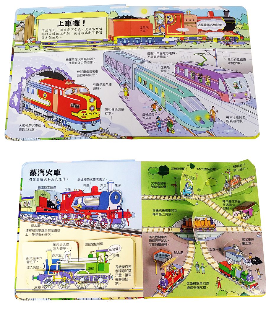 超過60個翻頁小驚喜的交通工具大集合!英國Usborne最暢銷的互動遊戲知識繪本,一本屬於孩子的「交通工具小百科」。