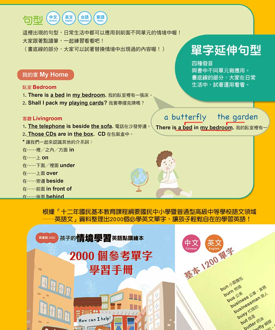 情境式的主題學習:情境的營造配合孩子生活經驗學習,將學習到的詞彙簡單用於生活中,輕鬆讀輕鬆念輕鬆學!