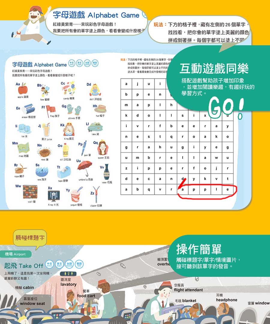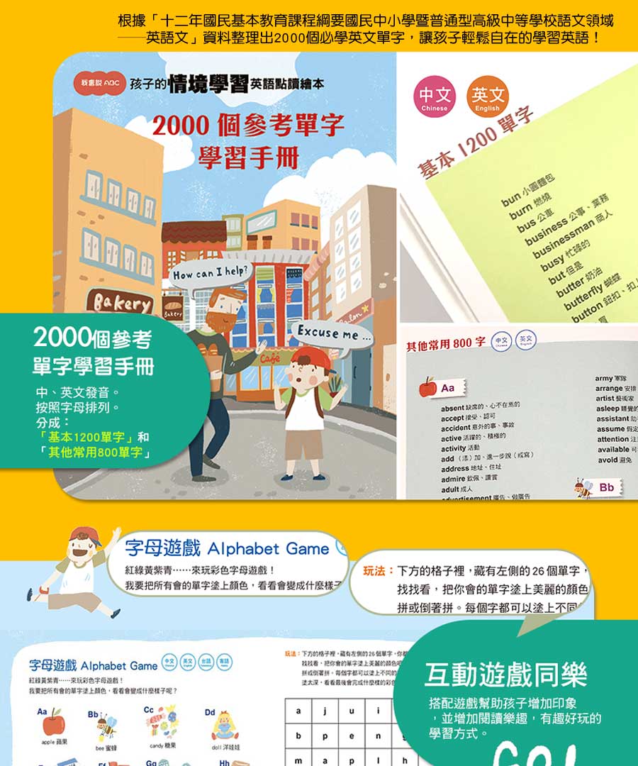 互動式的遊戲同樂:搭配遊戲幫助孩子增加印象,並增加閱讀樂趣,有趣好玩的學習方式。