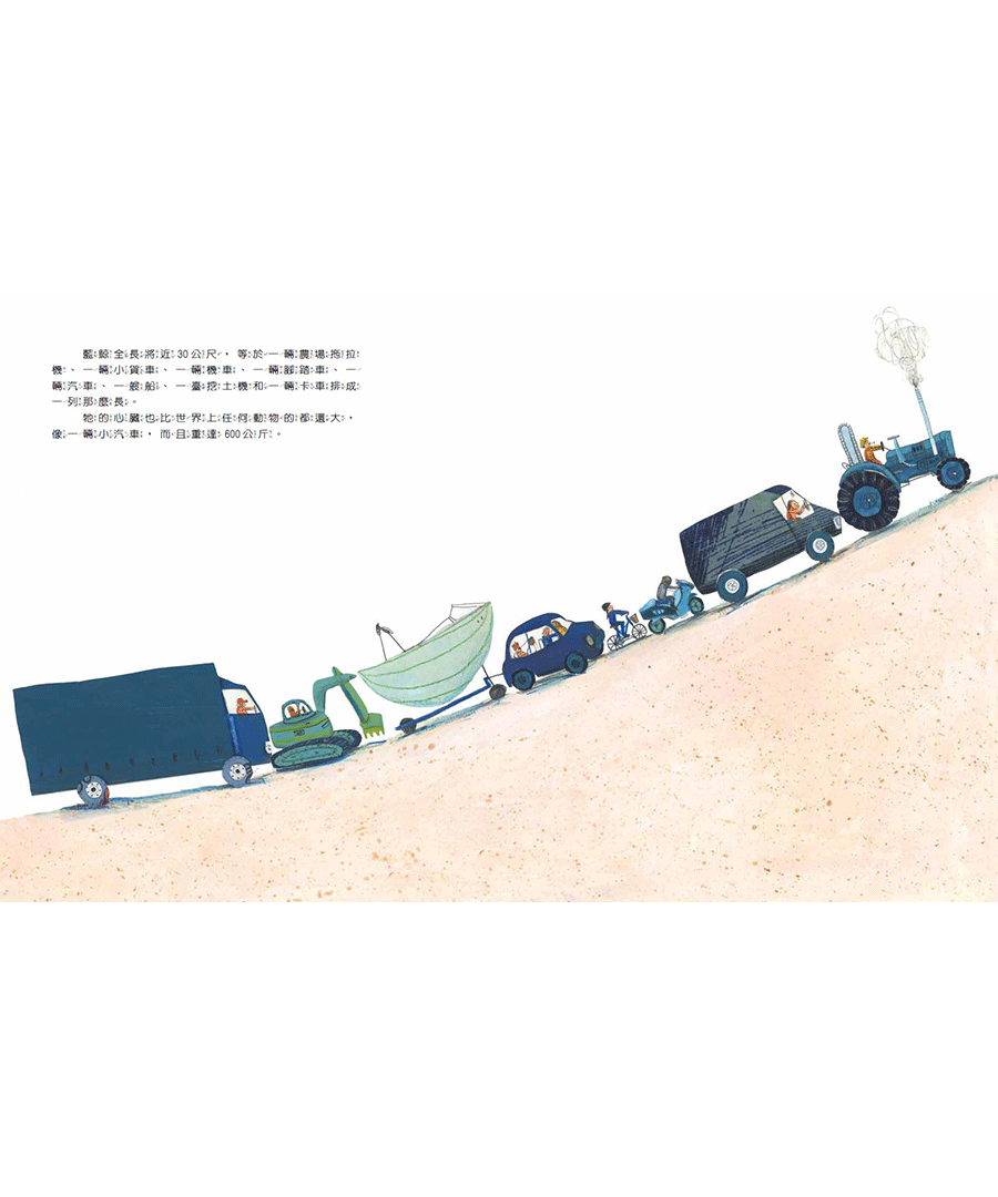 你知道目前地球上體型最大的生物是什麼嗎?小孩從書櫃上抽出一本書,他準備和你分享,關於海陸最大生物所有一切……