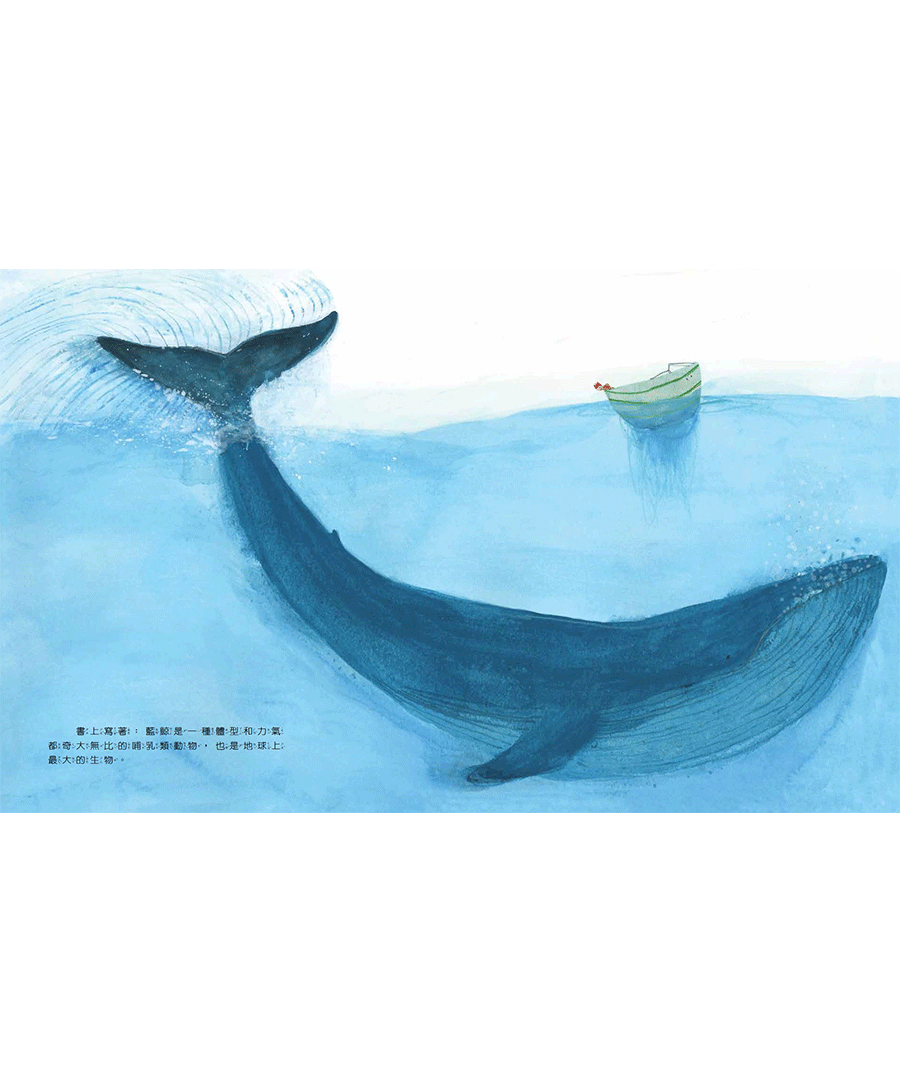 這是一本關於這個星球上最大的生物的迷人圖畫書,不同視角的圖像和美麗的色彩,彷彿擁有不可思議的療癒能力,並能讓人沉靜、撫平紛擾的思緒。讓我們一起跟著小男孩重新認識這個神祕又可愛的龐大海洋生物――藍鯨。