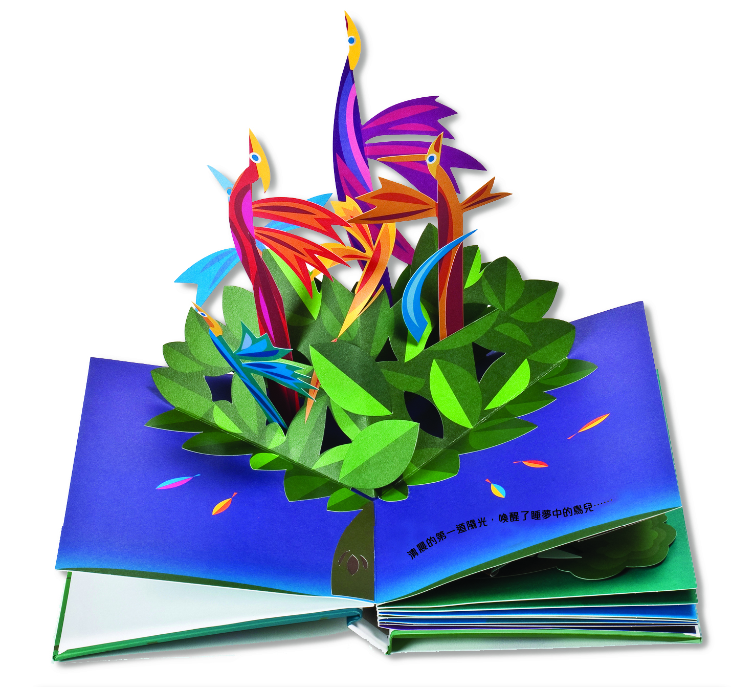 一本充滿生命力、熱鬧的立體故事書,令親子們愛不釋手!翻開來,每一頁怦然躍出、展開的畫面,帶讀者隨著吱吱喳喳的鳥寶寶們在明亮的早晨翱翔天際,伴午後陽光、沿河岸嬉戲跳舞,整個世界彷若是一座大型遊樂園。到了日落時分,孩子們就快快回家,窩在父母懷抱裡安詳甜蜜的沉睡吧。