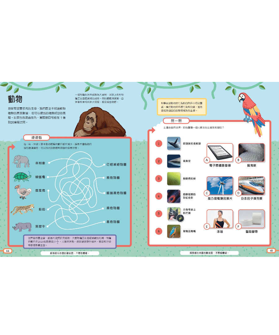 ※跨領域的多元學習,打破傳統框架 結合生物、物理、化學、地球科學等等,涵蓋了非常廣泛的科學領域,主題式的章節設計,一個跨頁就是一個概念。書中也介紹了各式各樣的科學發展,例如太空科學、生物醫學、仿生發明等,幫助孩子建立多元知識。