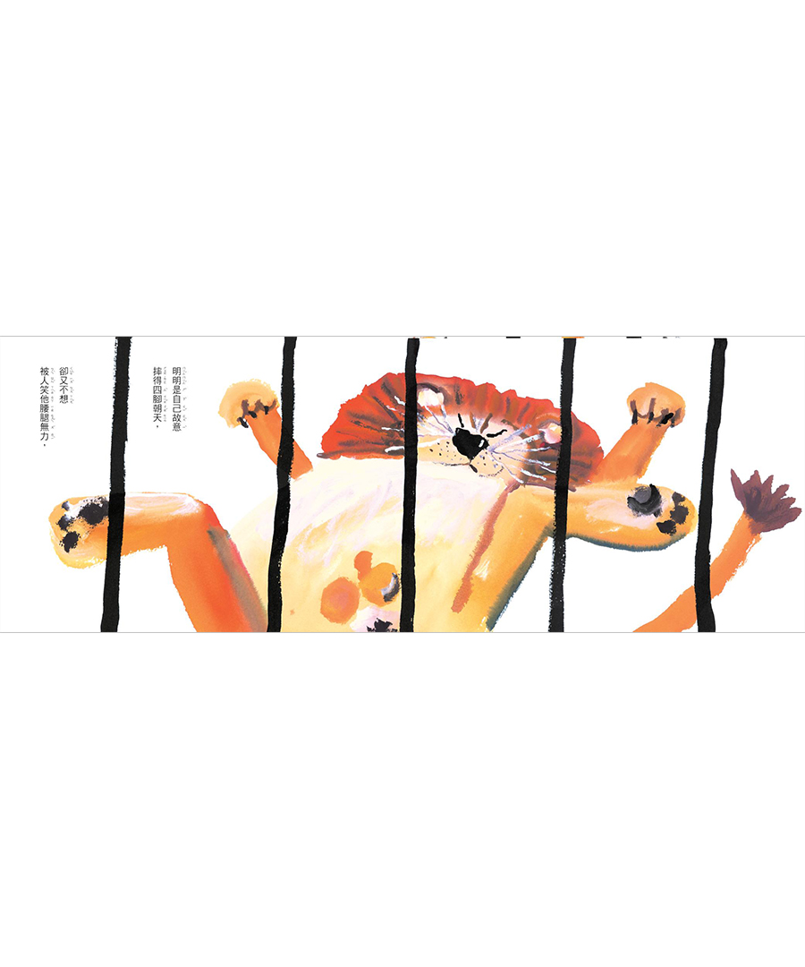 這頭矛盾的獅子,透過長谷川義史近似兒童畫的手法作畫,配合的天衣無縫,也讓人不禁聯想到獅子那可笑又矛盾的行徑,