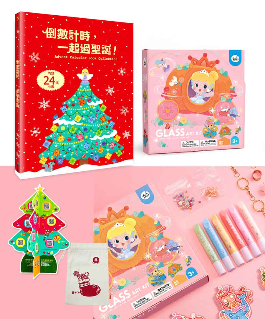 【聖誕優惠】倒數計時,一起過聖誕!(二版/(24冊合售/紅色) +玻璃膠畫-童話公主(粉)