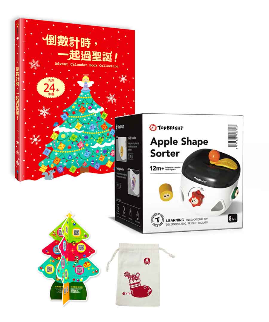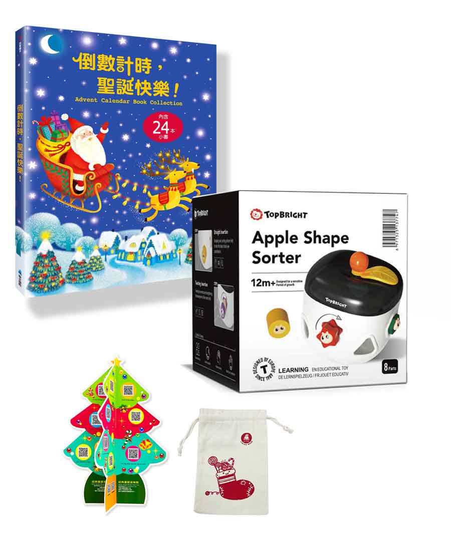 【聖誕優惠】倒數計時,一起過聖誕!(二版/(24冊合售/紅色) + 蘋果形狀認知盒